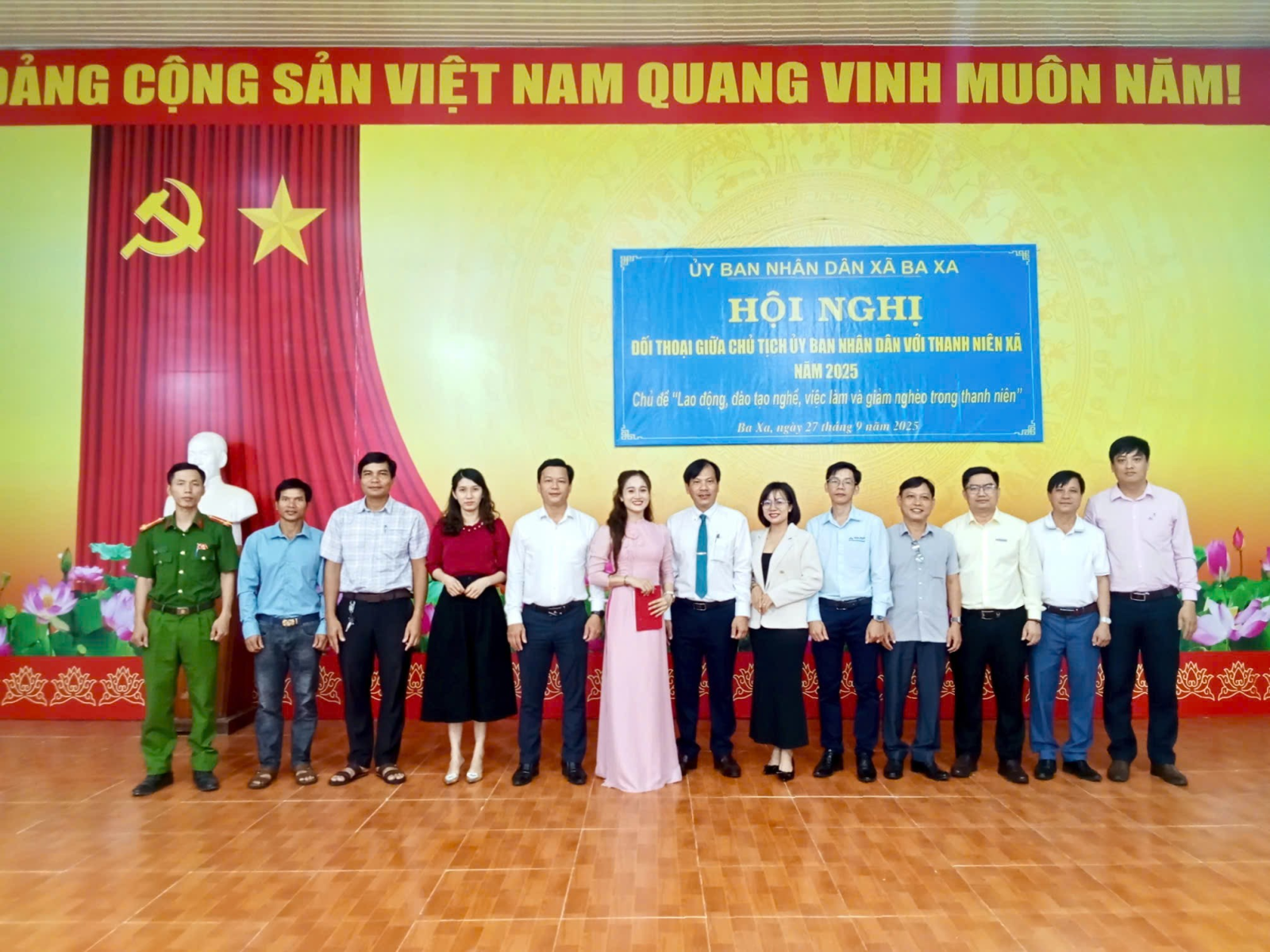 Sáng 27/9/2025, tại Hội trường nhà văn hóa xã Ba Xa đã diễn ra Hội nghị Đối thoại giữa Chủ tịch UBND xã với thanh niên. Đồng chí Huỳnh Việt Hùng, Phó Bí thư Đảng ủy, Chủ tịch UBND xã chủ trì Hội nghị đối thoại.